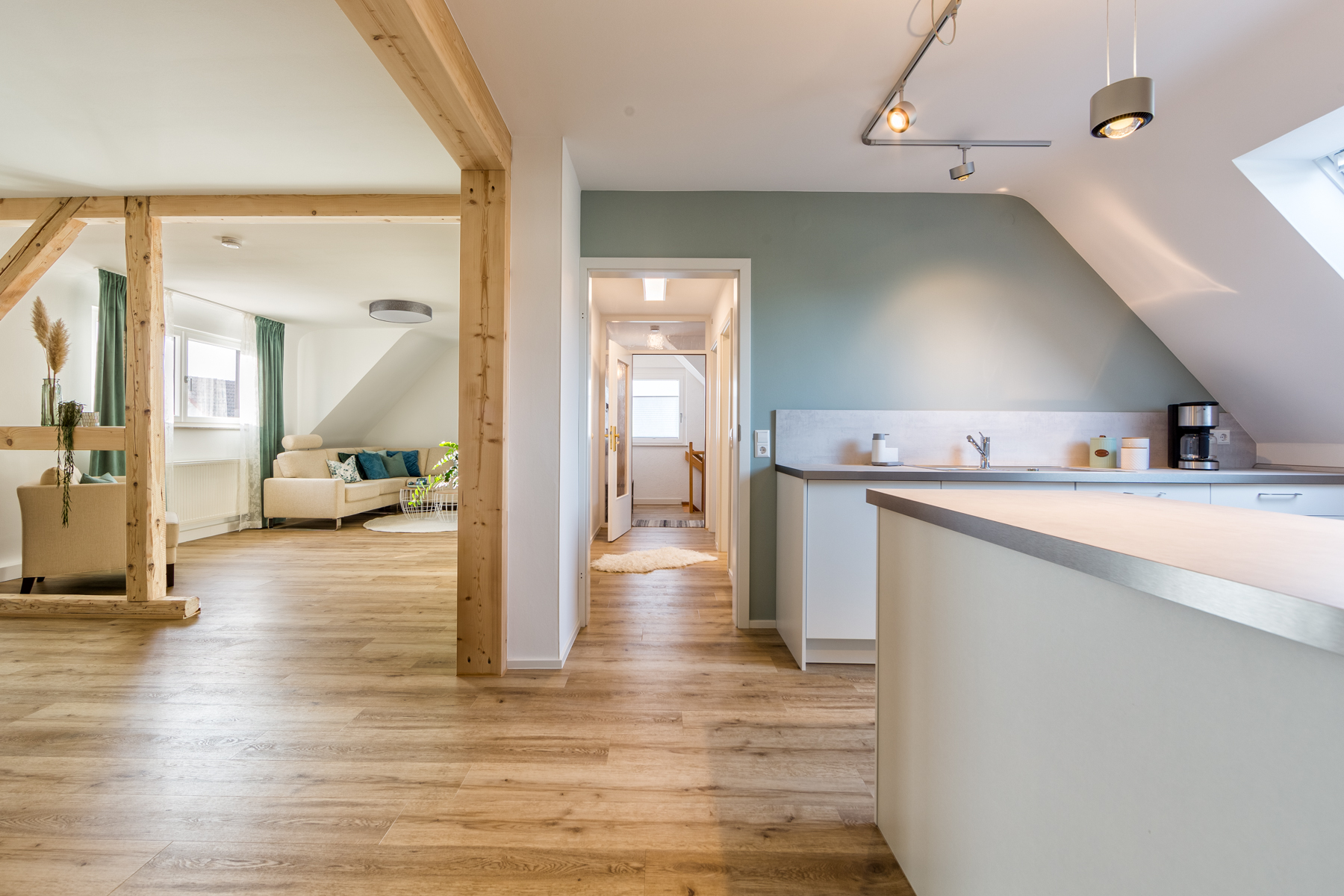 Jedes Detail wurde mit Bedacht gewählt – von der Wandfarbe bis hin zur passenden Einrichtung. Das Ergebnis: eine Ferienwohnung, die mit Stil, Wärme und Zurückhaltung überzeugt und dabei ganz bewusst auf Ursprünglichkeit setzt.